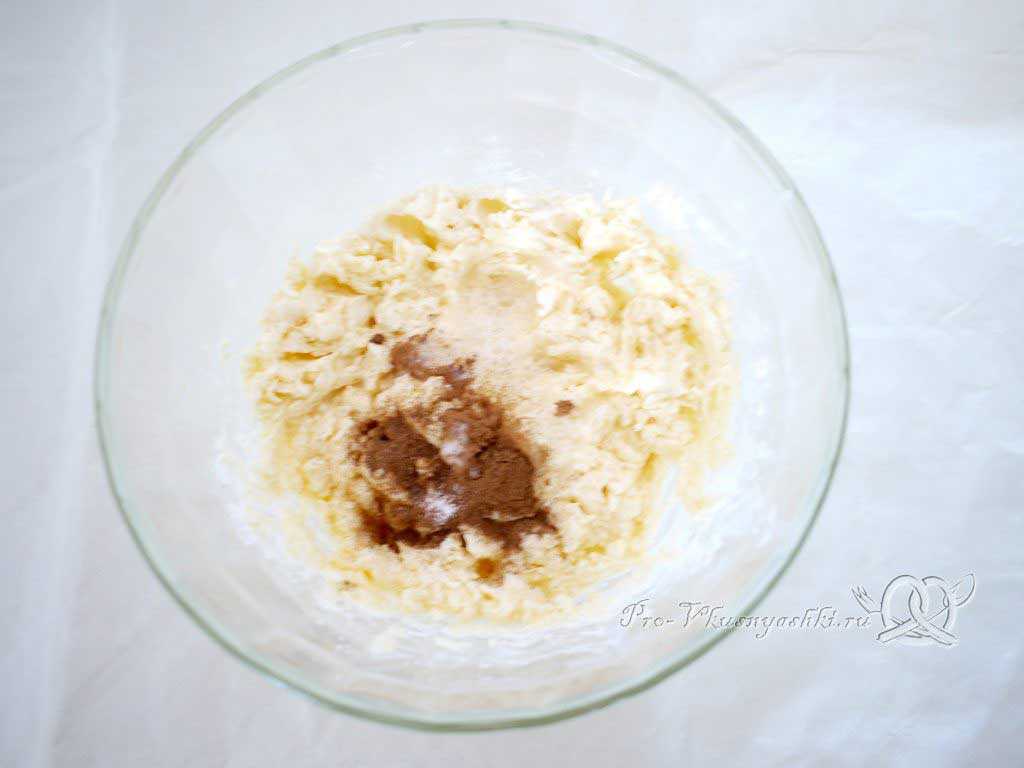 Соду (1/4 ч.л) нейтрализуем лимонным соком (1 ч.л) или несколькими каплями 6 % уксуса. Вводим ее в масляную массу.