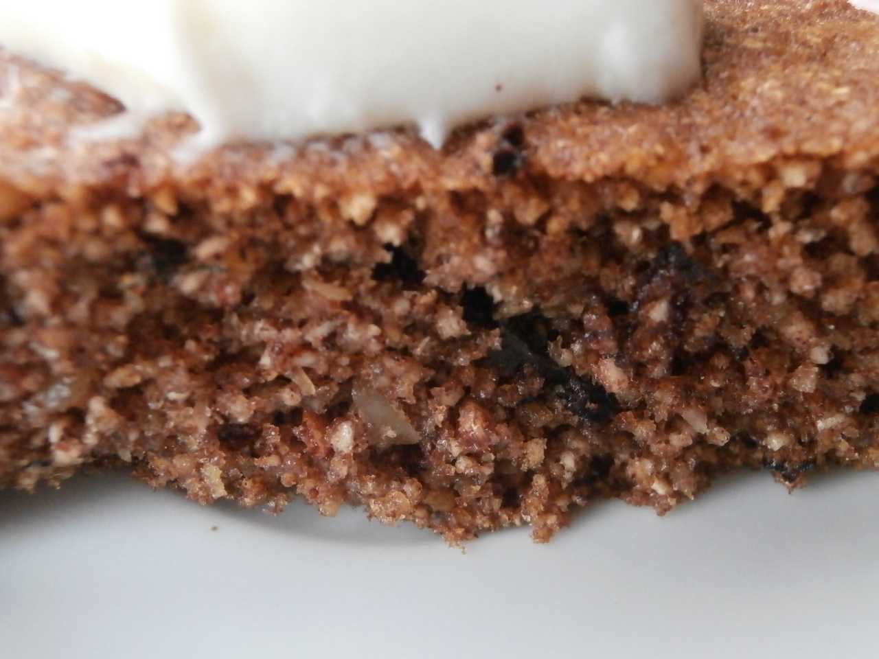 Ингредиенты: гречневая мука – 100 г., яйца – 2 шт., сахар – 80 г. (можно меньше), сливочное масло – 80 г., черный горький шоколад – 40 г., орехи – 20 г. (горсть), разрыхлитель – 1,5 ч.л.