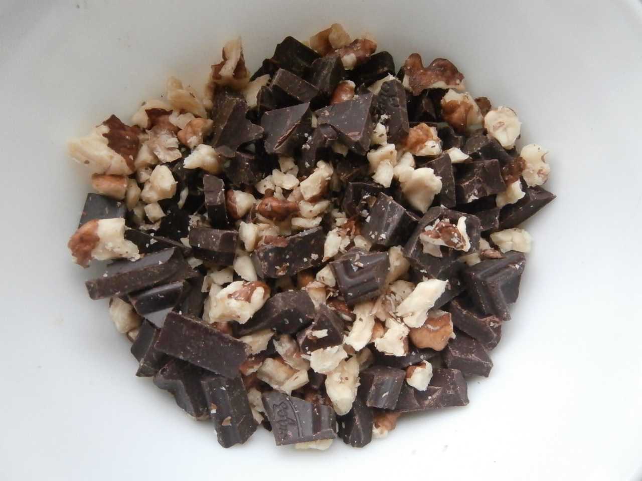 Далее в тесто отправляется шоколадная крошка. Для ее приготовления можно просто мелко порубить шоколадку.