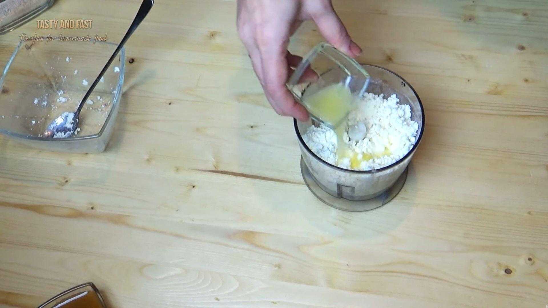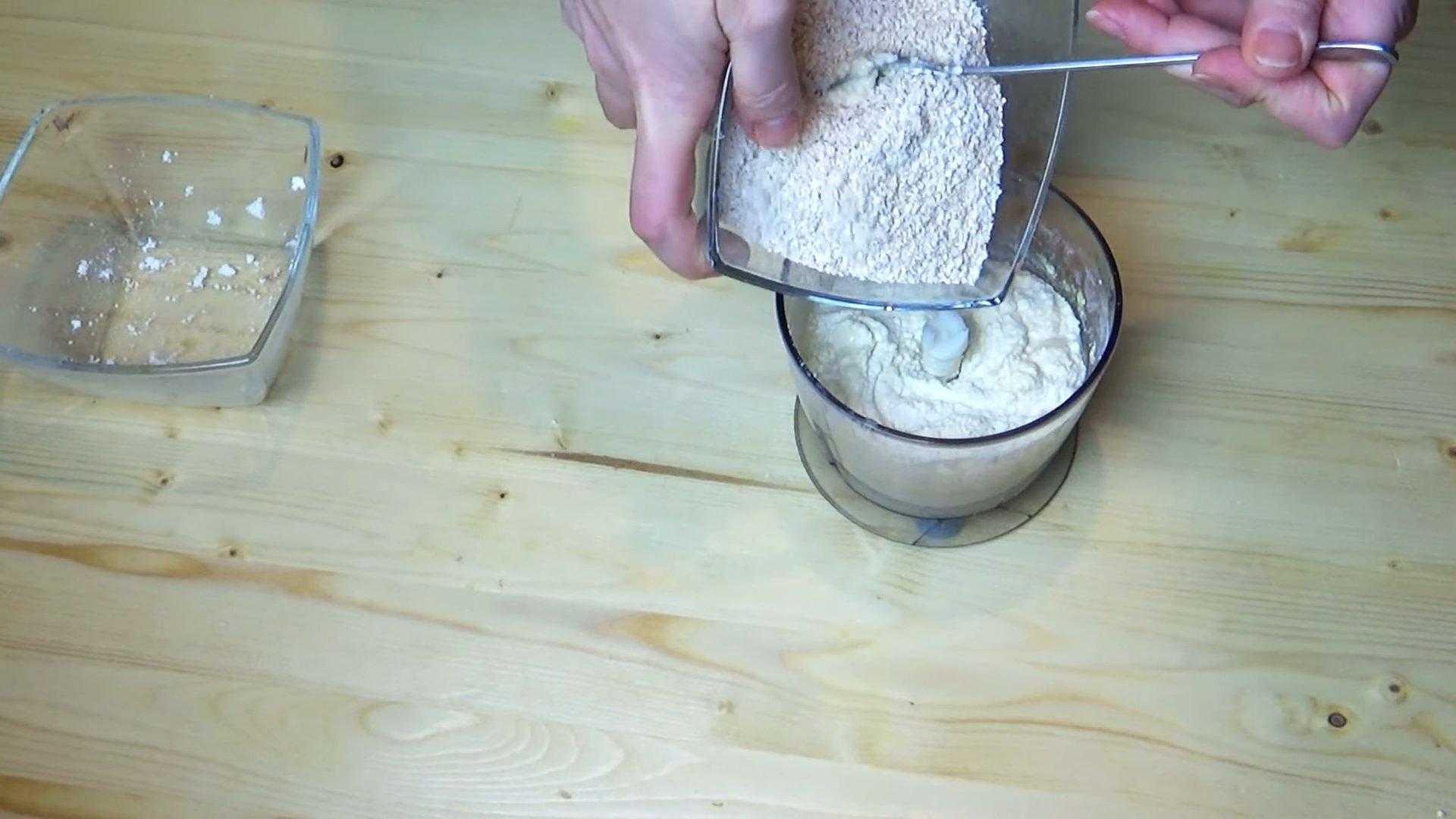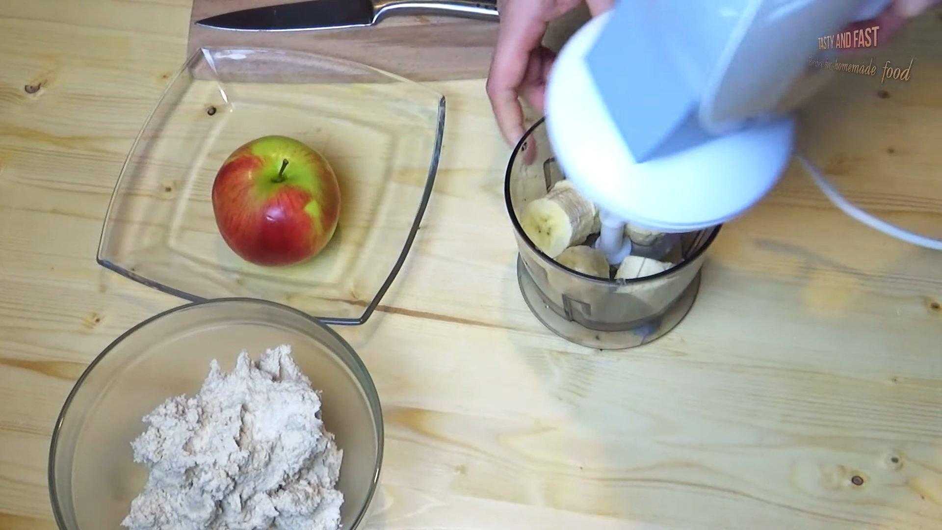 - Измельчите овсянку. Пересыпьте готовую крошку в посуду для замешивания теста.