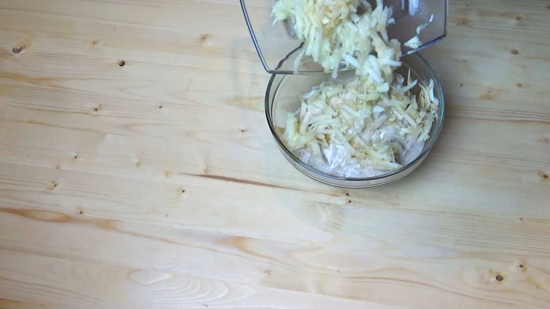 Отжать сок из яблока необходимо, так как лишняя влага не нужна тесту: оно будет расползаться и придать ему форму не получится.
