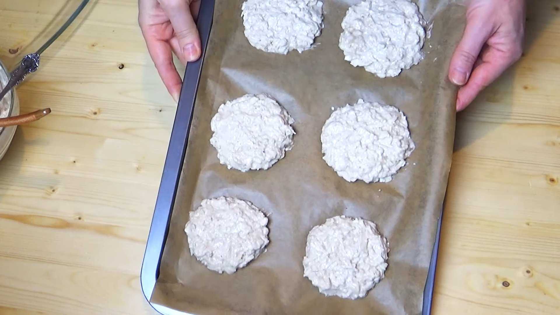 - Выложите печенье на застеленный и смазанный растительным маслом противень.