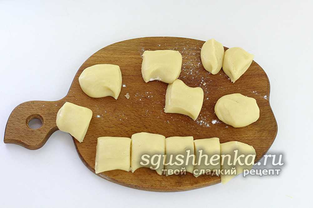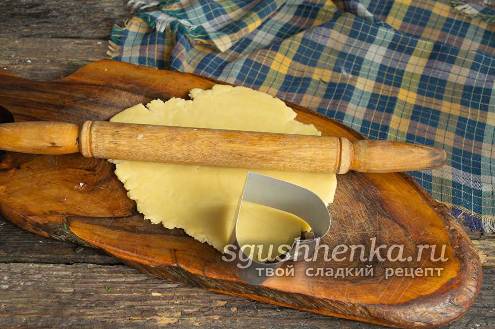 Разделочную доску слегка «припудрить» мукой либо смазать растительным (без запаха!) маслом – на выбор. Отделить от охлажденного шара небольшой кусок, раскатать пластом (максимальная толщина – 4 мм).