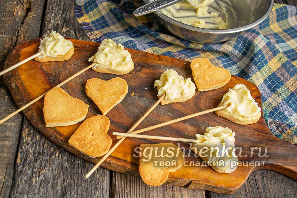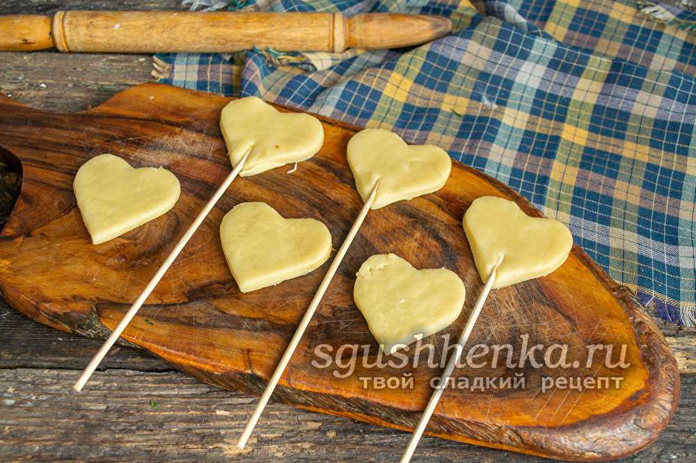 Если есть формочки для печенья, отпрессовать заготовки задуманной формы – по две одинаковых на каждую шпажку, если нет, вырезать ножом (кухонным либо кондитерским).