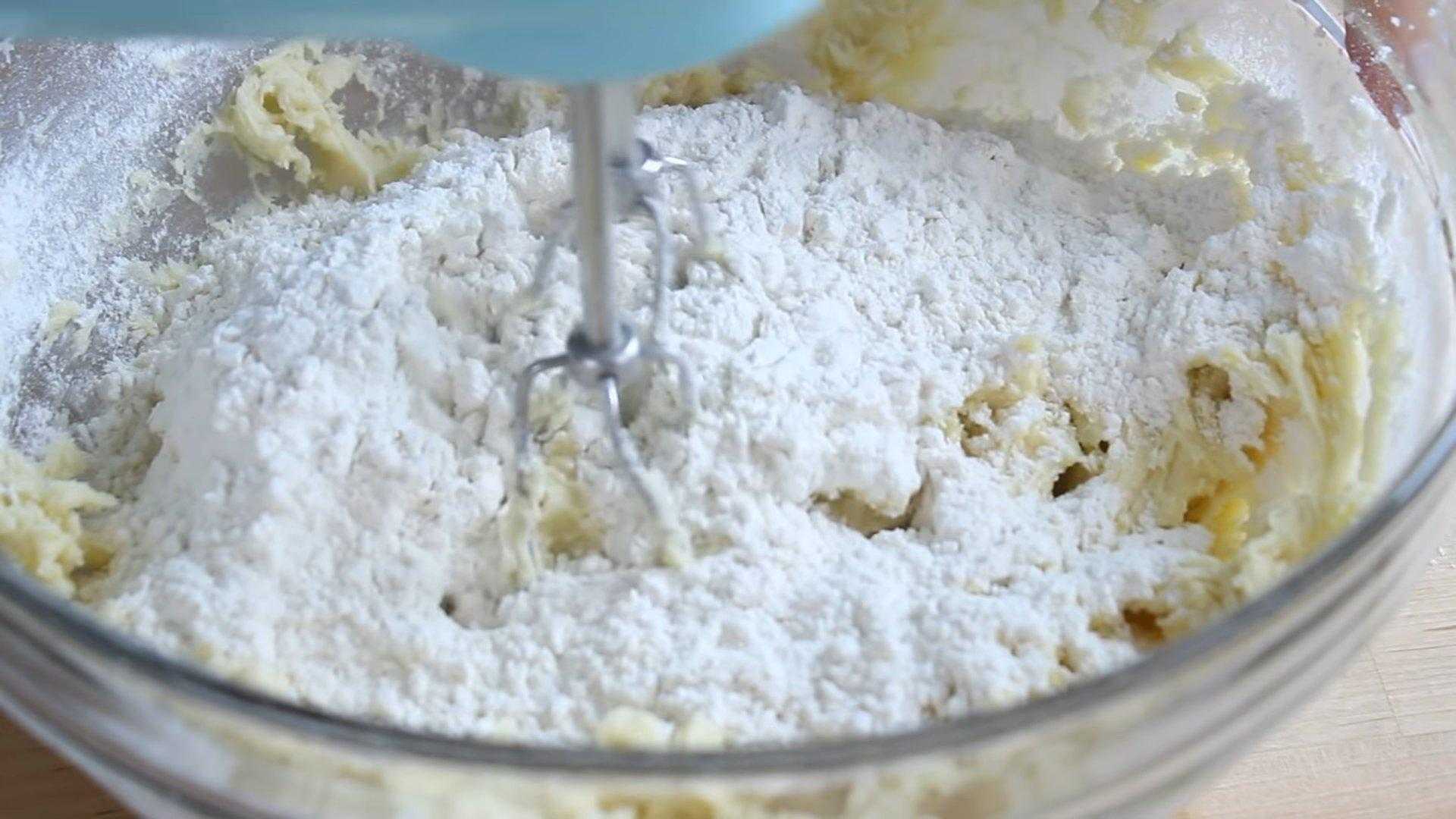 Смешиваем тесто. Сначала масло и сахар, затем желток, после пшеничную муку. Если получается слишком сухая и рассыпчатая смесь, то добавляем столовую ложку воды, молока или сливок. Готовое тесто помещаем в холодное место на 10 минут.