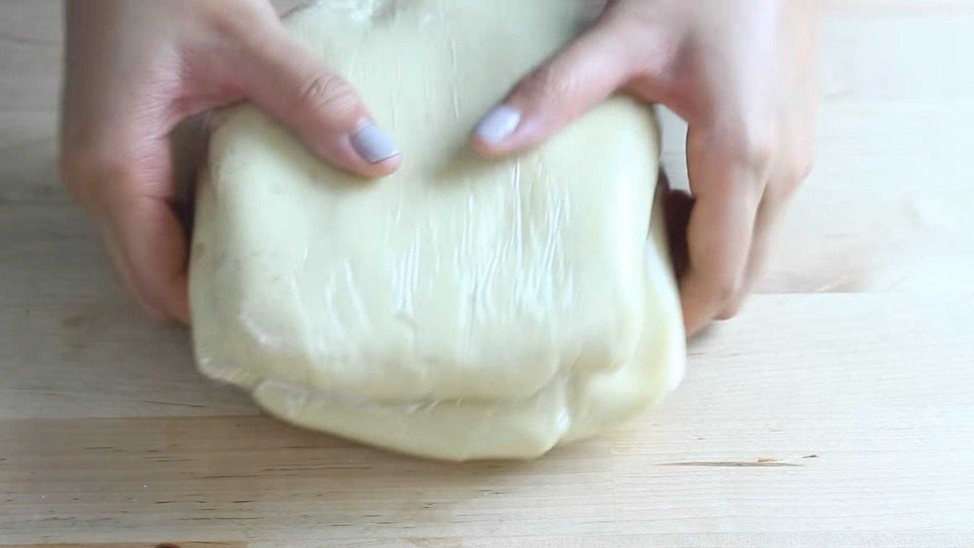 - Вымешайте тесто, сформируйте его шариком, оберните пищевой пленкой и оставьте на 45 минут при комнатной температуре.