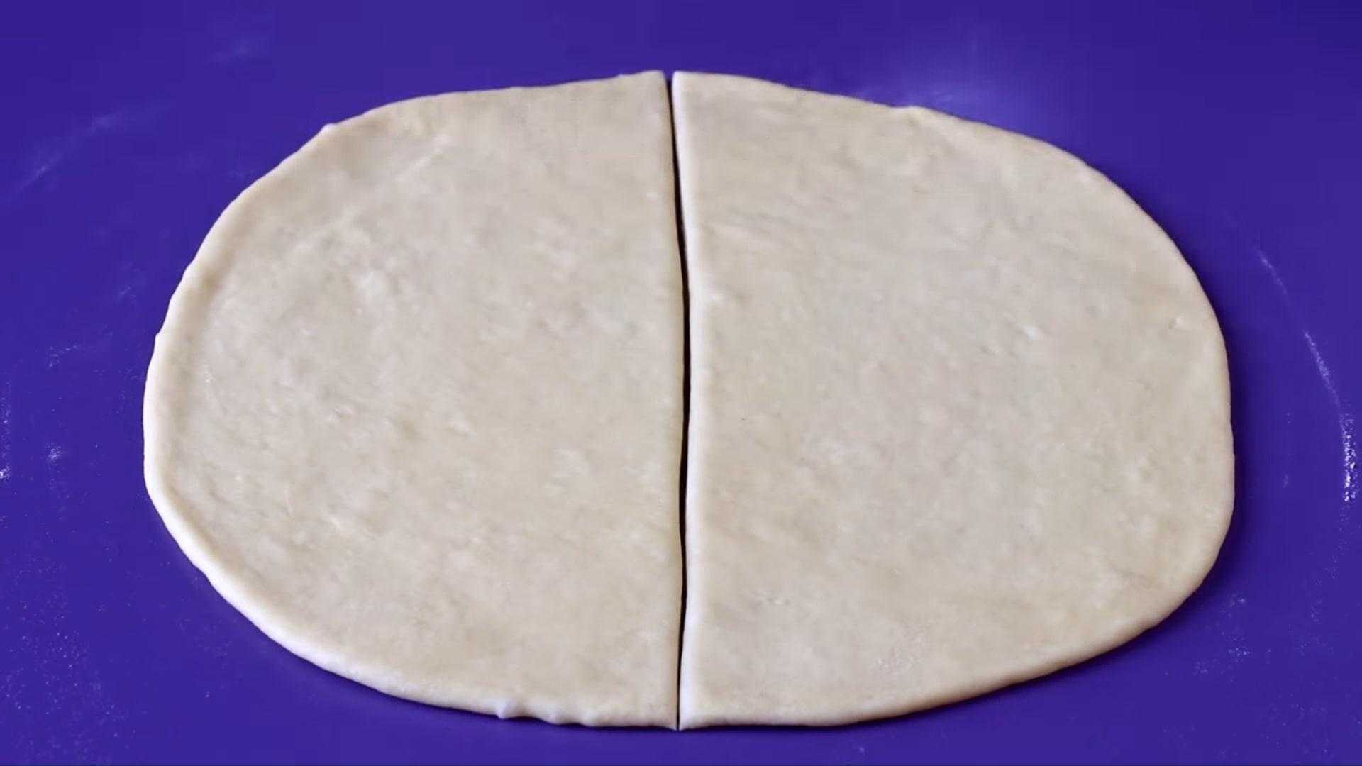Увеличенное тесто разделяем на 4 равные части. Каждую часть раскатываем в круглый пласт толщиной до 1 см.