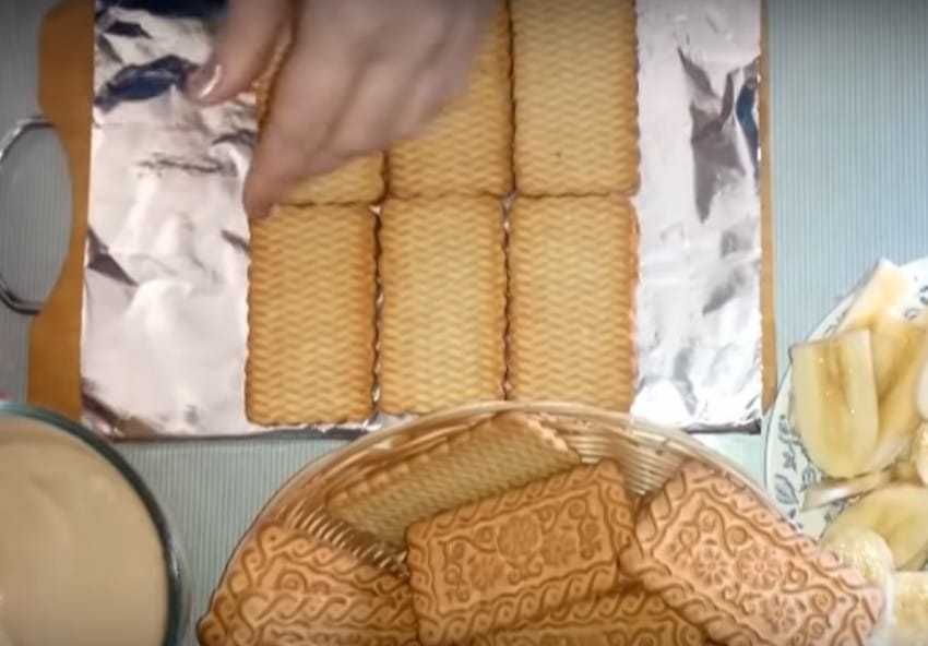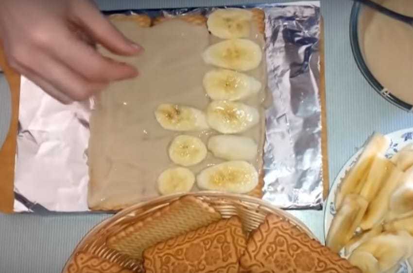 Банановый торт без выпечки – рецепт из печенья со сгущенкой