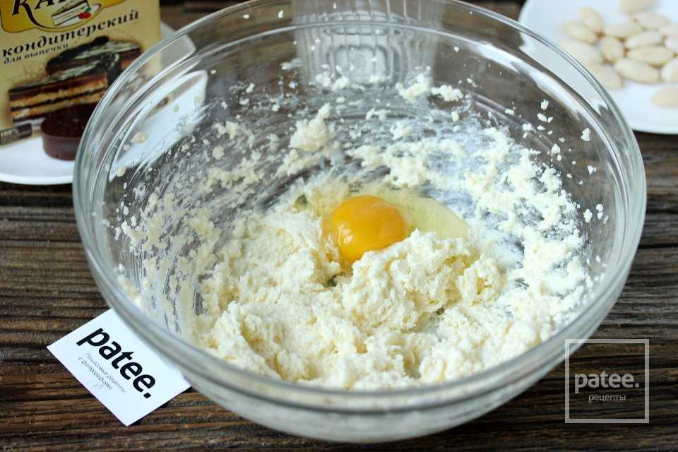 Взбиваем миксером масло с сахаром до получения массы кремовой консистенции. Разбиваем в эту масляную массу яйцо. Ещё раз всё взбиваем миксером (на медленных оборотах) примерно 10 секунд.