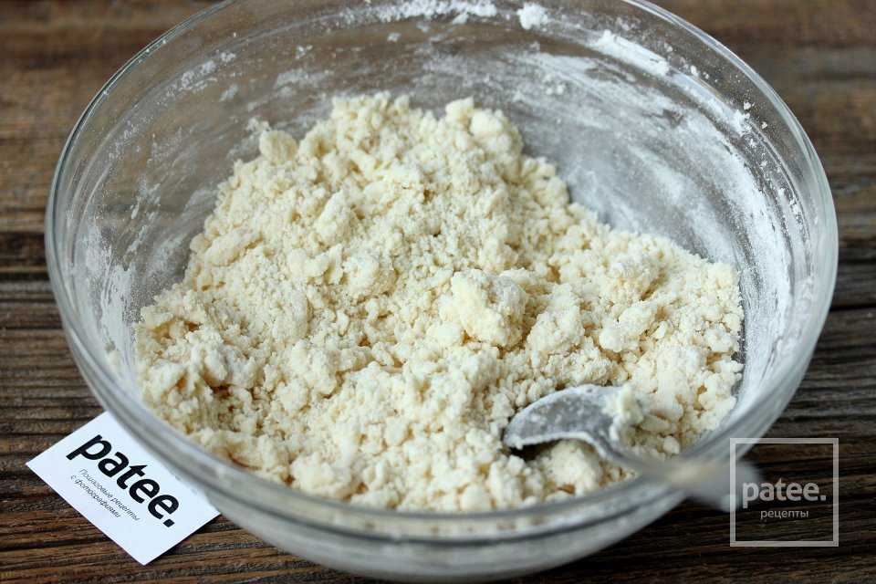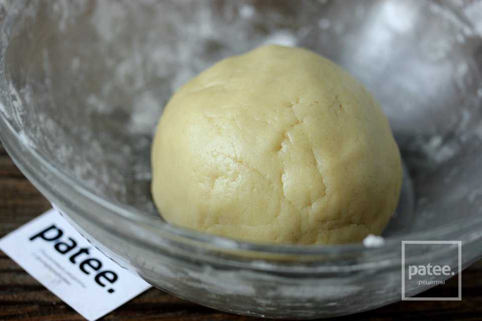 - Смешиваем масло, муку, сахар, яйцо, соль, разрыхлитель в однородное тесто. Убираем тесто в холодильник на час.