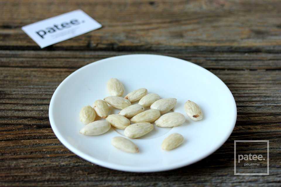 Итак, приступим к приготовлению печенья на Хэллоуин. Сначала подготовим миндаль для “ноготков”, очистив целые ядра от кожицы. Для этого миндальные орехи на 10 минут заливаем кипятком, затем воду сливаем и ещё раз орехи заливаем кипятком минут на 5, воду сливаем. После таких водных процедур вы без проблем сможете очистить миндаль от кожицы. Подсушиваем миндаль и переходим к следующему этапу приготовления печенья.