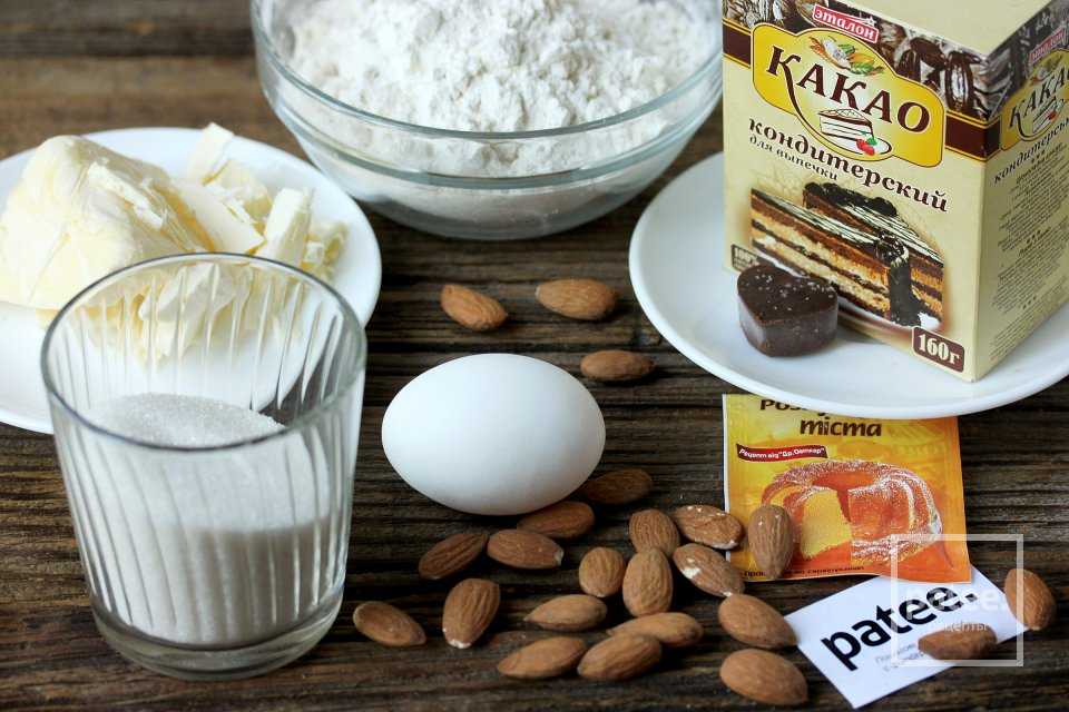 Для приготовления печенья “Пальцы ведьмы” на Хэллоуин нам понадобятся следующие ингредиенты: сливочное масло, пшеничная мука, сахар, куриное яйцо, разрыхлитель, какао-порошок, миндаль, кусочек молочного или чёрного шоколада.