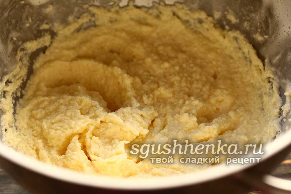 Заблаговременно из холодильника нужно достать сливочное масло, подождать, пока станет мягким. Затем разбить яйца и отделить белки от желтков. Желтки положить в миску, в которой будет замешиваться тесто. Добавить сахар и ванилин. Получившуюся массу нужно взбить до того момента, пока она не станет однородной.