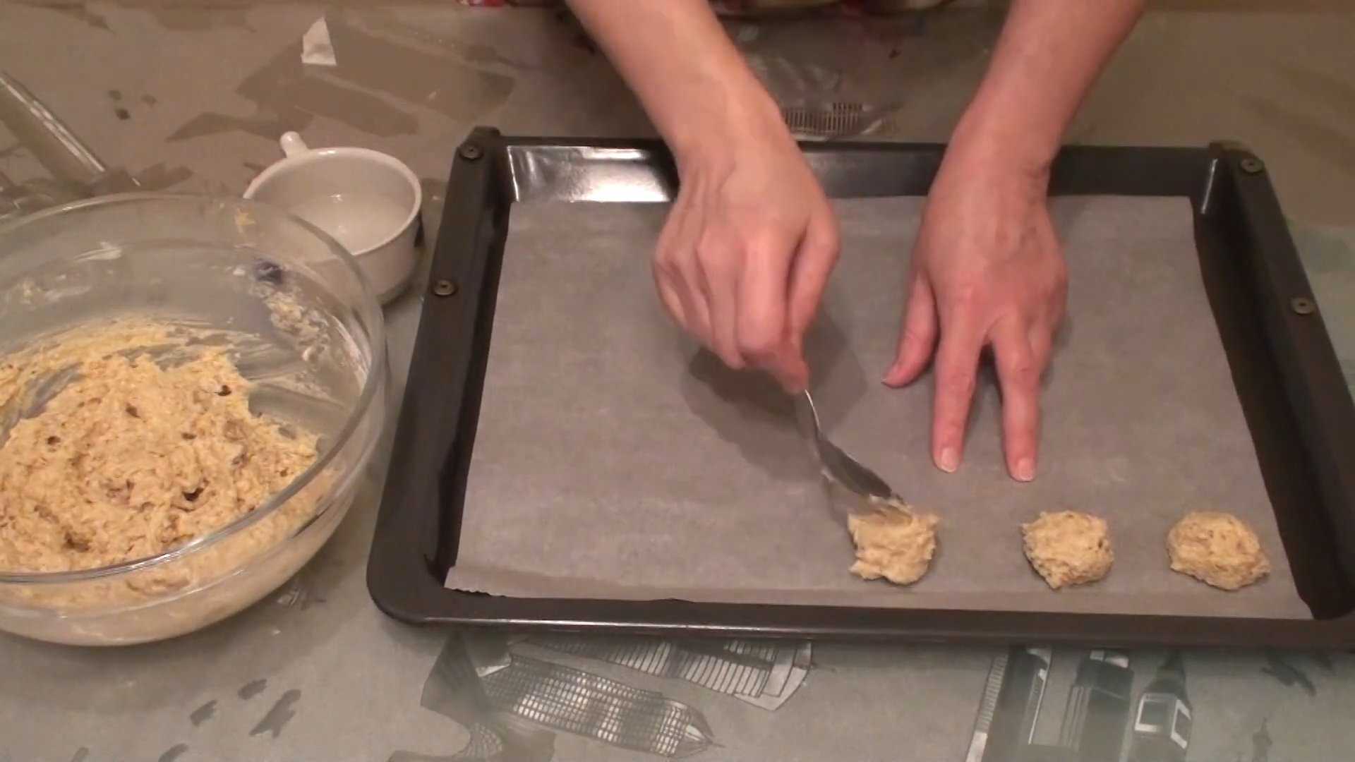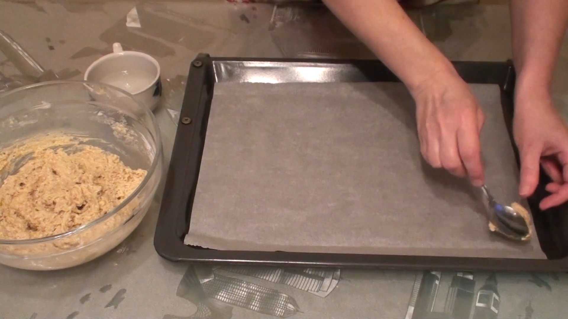 Выложить печенье на застеленный кулинарной бумагой противень (пергамент лучше слегка смазать маргарином либо маслом). Убрать на полчаса в холодильник.
