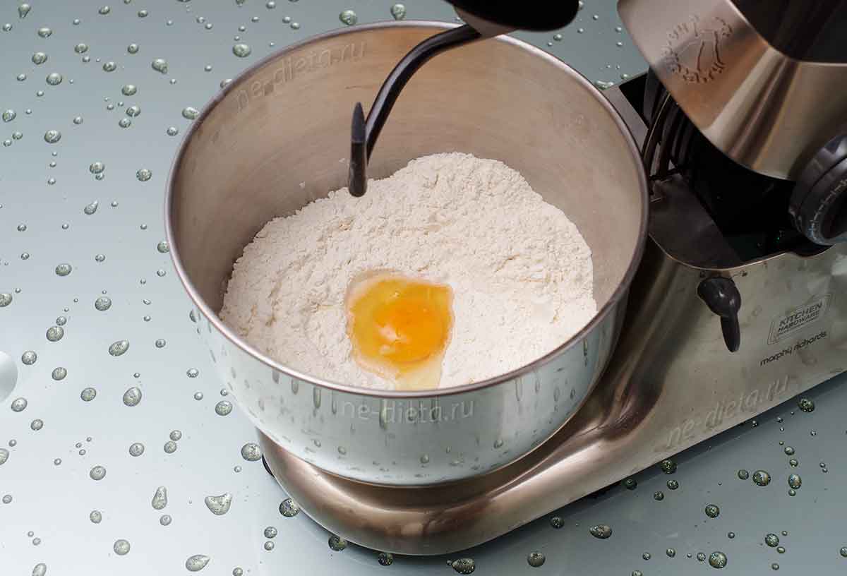 1. Для того чтобы приготовить необыкновенно вкусный и оригинальный венгерский пирог «Жербо», сначала нужно замесить песочное тесто. Для этого муку надо просеять с солью и разрыхлителем в глубокую емкость или чашу кухонного комбайна.