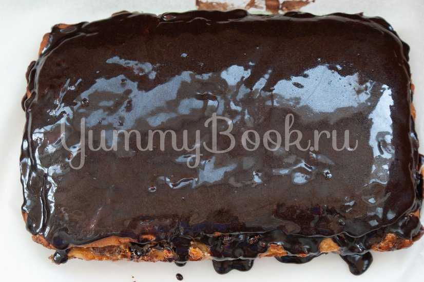 10. Готовый пирог полить шоколадной глазурью. Я поливаю своей любимой шоколадной помадкой (глазурью).