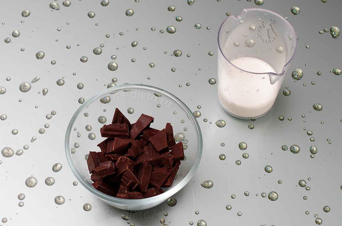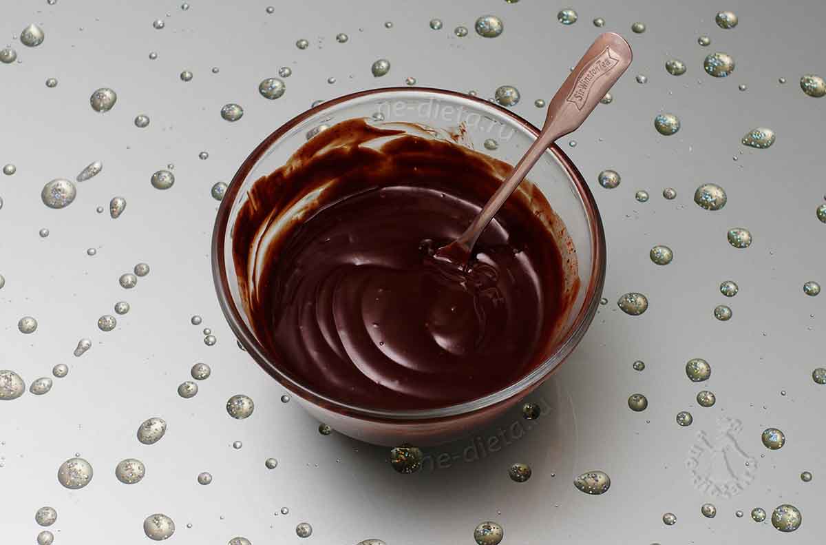 Шаг 8. Далее остается только приготовить глазурь, а для этого на водяной бане прогреть хорошенько сливки любой жирности, в них выложить измельченный темный шоколад, перемешать. Как только шоколадно-сливочная глазурь будет полностью готова, слегка остудить ее и полить этой сладкой смесью приготовленный венгерский пирог орехово-абрикосовый.