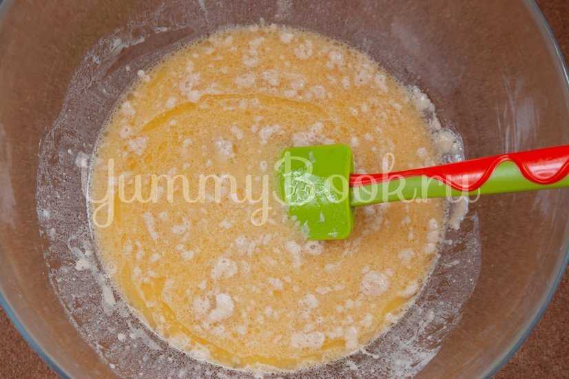 2. В желточную массу добавляем сметану и растительное масло, взбиваем венчиком или миксером. Нам необходимо получить однородную консистенцию.