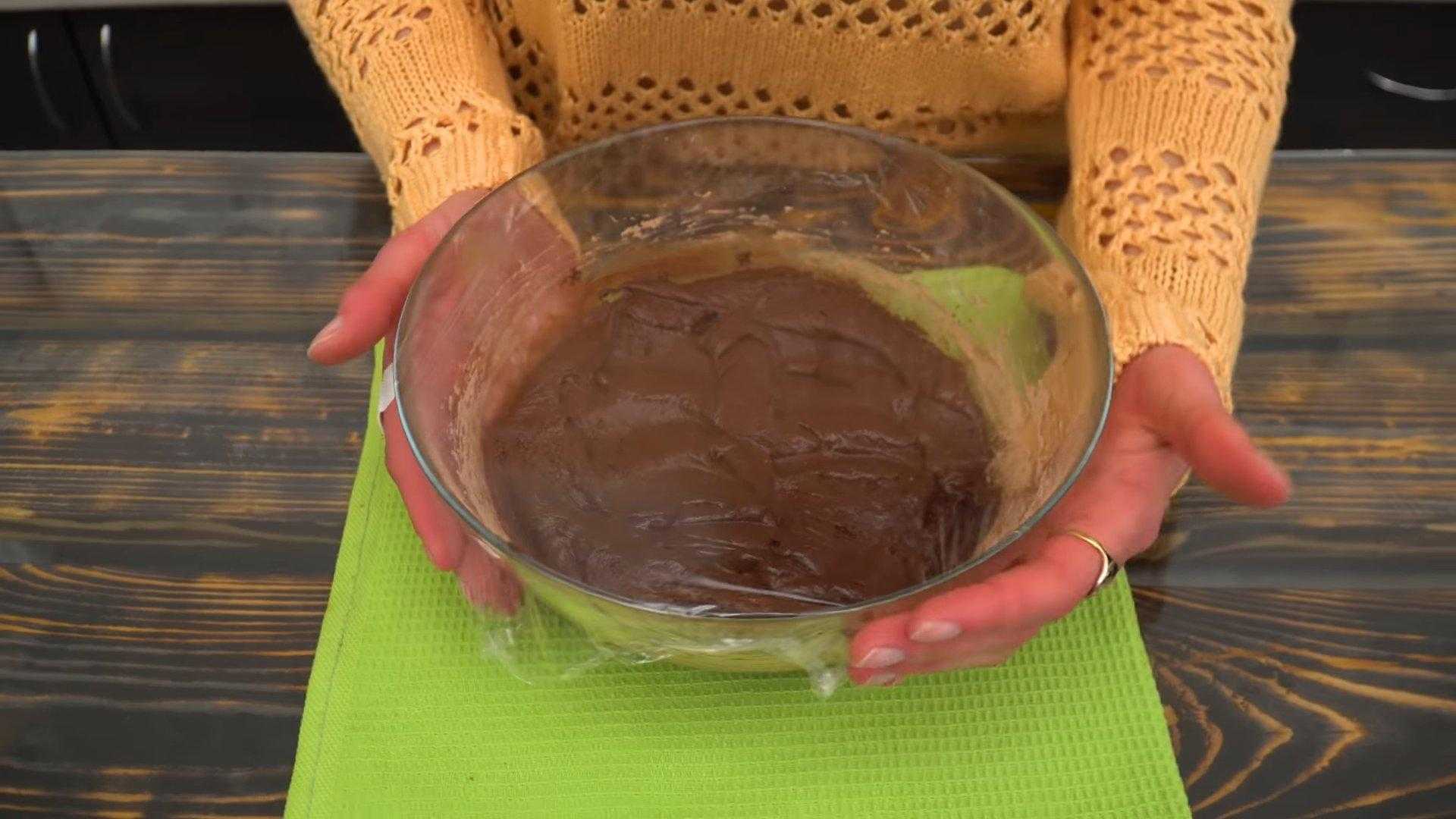 - Накройте миску пленкой, и отправьте тесто загустевать в холодильник на час.