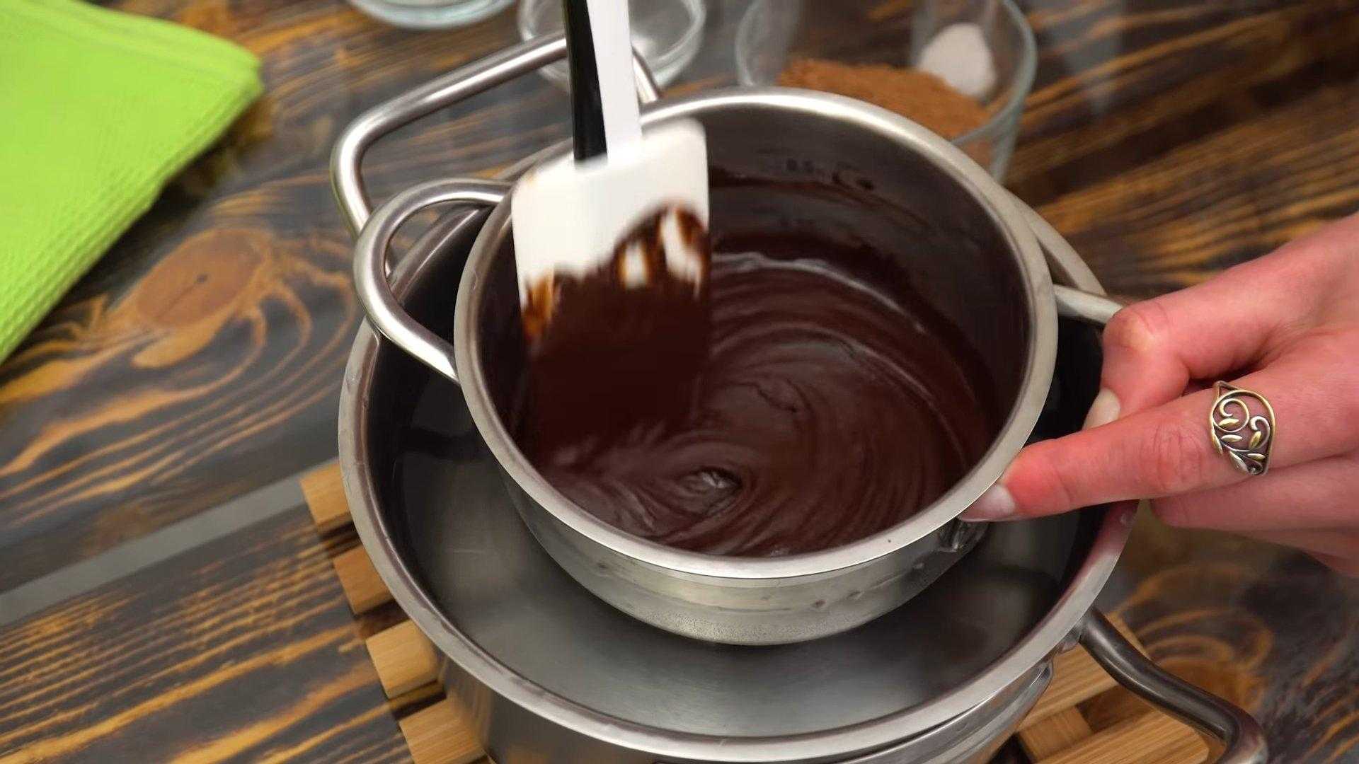 Когда массы стала однородной, снимаем ее с огня и остужаем. Чтобы ускорить этот процесс, ставим кастрюлю в миску с холодной водой и помешиваем массу до полного остывания.