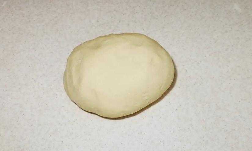 - Тесто мягкое, немного липнет к рукам. Перекладываем шарик на разделочную доску.