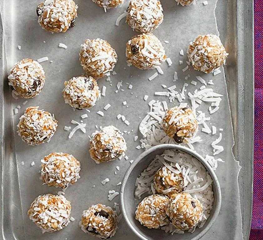 Положите в миску арахисовое масло и мед, смешайте их вместе, а потом посыпьте ванилином. Затем поочередно добавить остальные ингредиенты, оставив немного натертого кокоса. Готовое тесто накройте крышкой, его нужно охладить. Руками сформируйте шарики диаметром примерно 2,5 см. Обваляйте их в тертом кокосе и охладите перед подачей на стол.