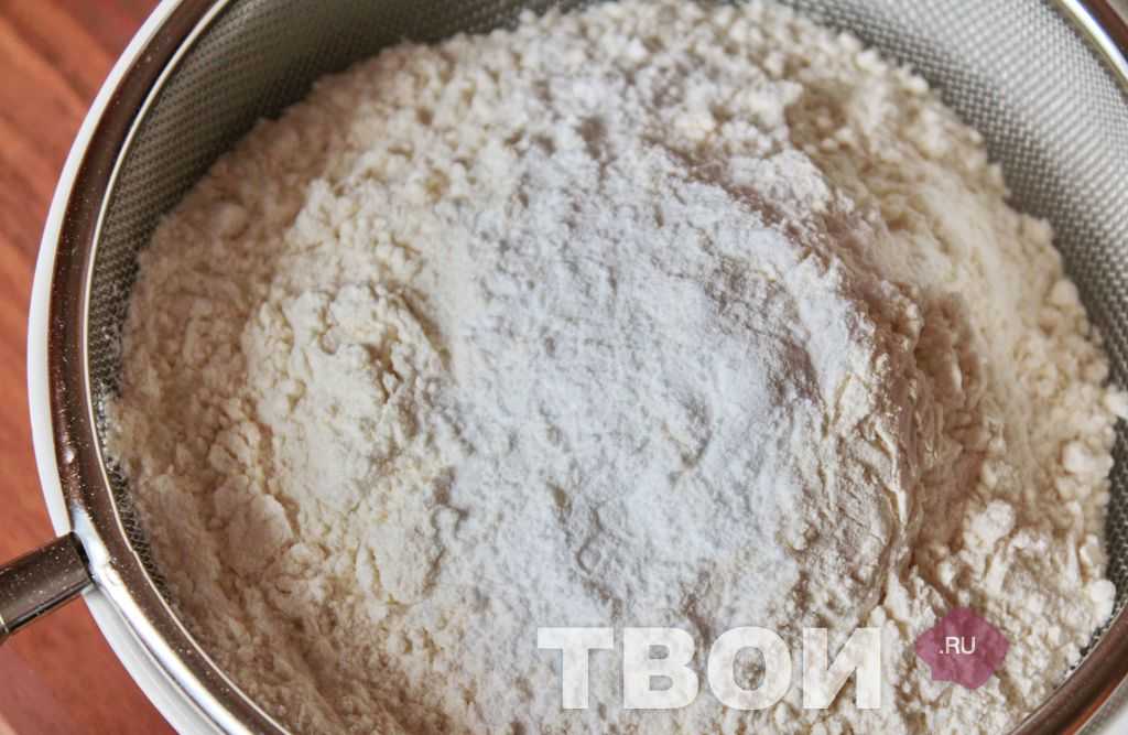 - Смешайте вместе сухие ингредиенты: просеянную муку, разрыхлитель и корицу.