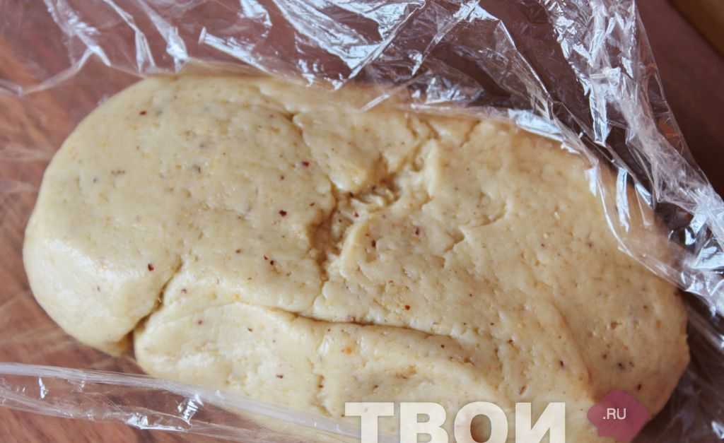 Подготовленное тесто обернуть пищевой пленкой и убрать в холод на 20 минут.