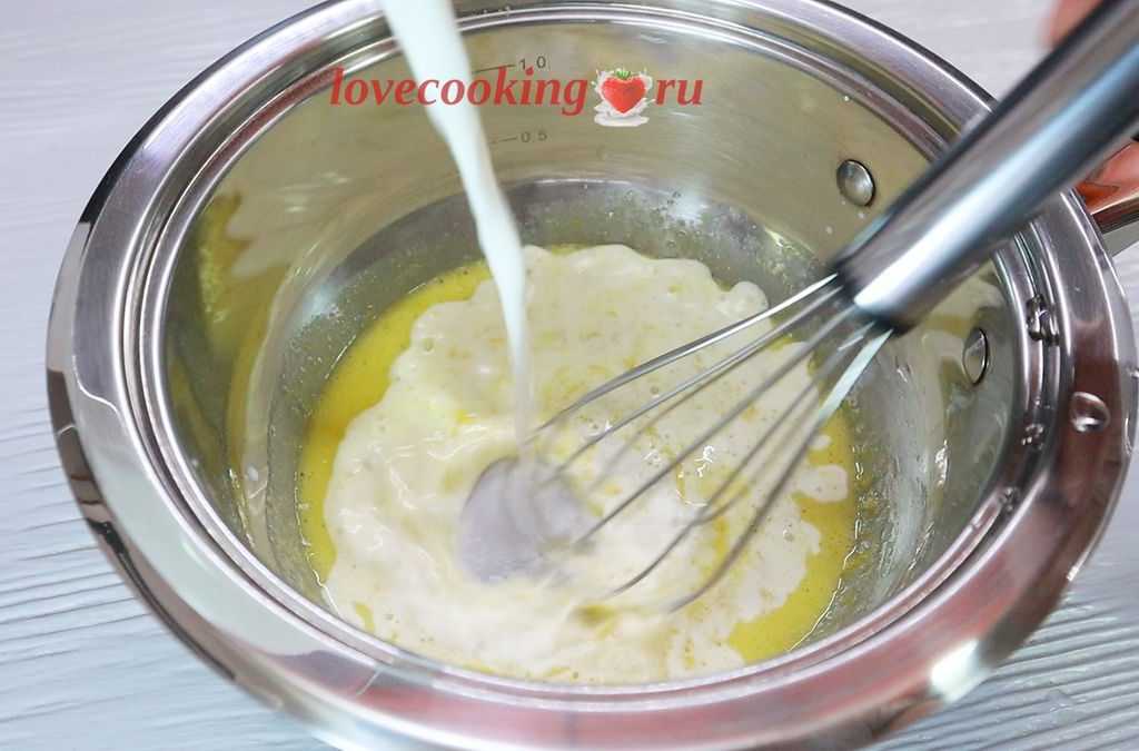 Добавляем горячее молоко, постоянно перемешивая.