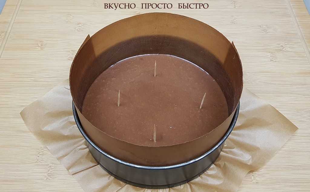 Жидкое тесто выложить в емкость для выпекания и поставить в разогретый до 180 градусов Цельсия духовой шкаф на 40 минут.