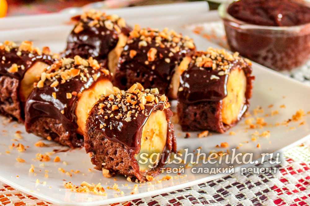 - Каждый блинный слой промазывают шоколадной пастой и посыпают рублеными орехами.