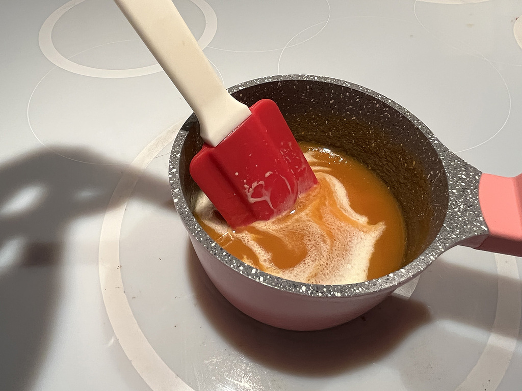 Это все перемешивают в сотейнике, который ставят на огонь и, активно помешивая, доводят до кипения и минуту-две кипятят.