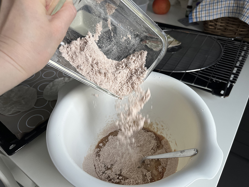 Это важно: сода и разрыхлитель должны распределиться равномерно по всей смеси, тогда бисквиты будут одинаково пористыми