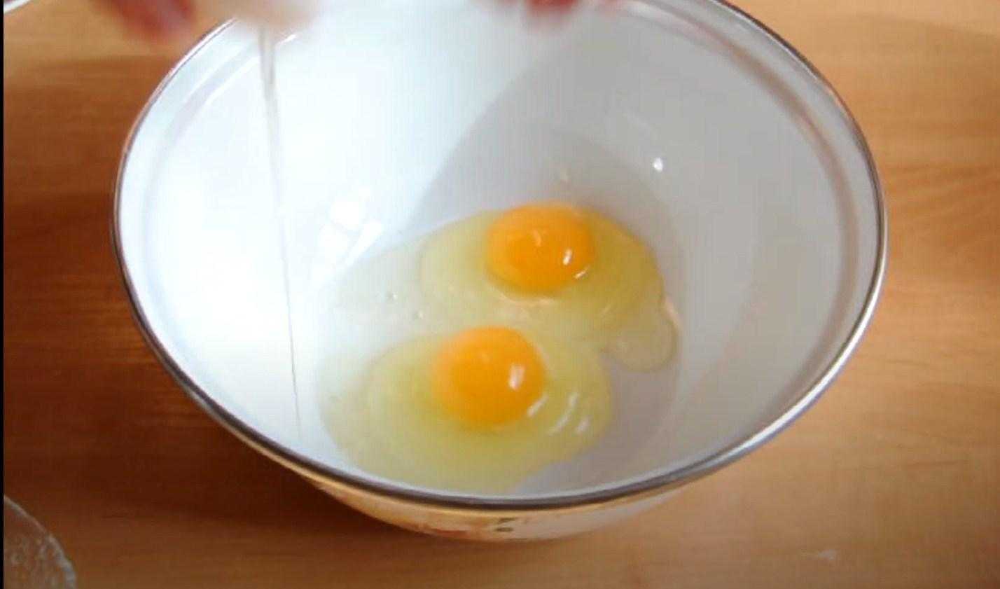 - Взбиваем три яйца миксером, чтобы у нас образовалась плотная пена.