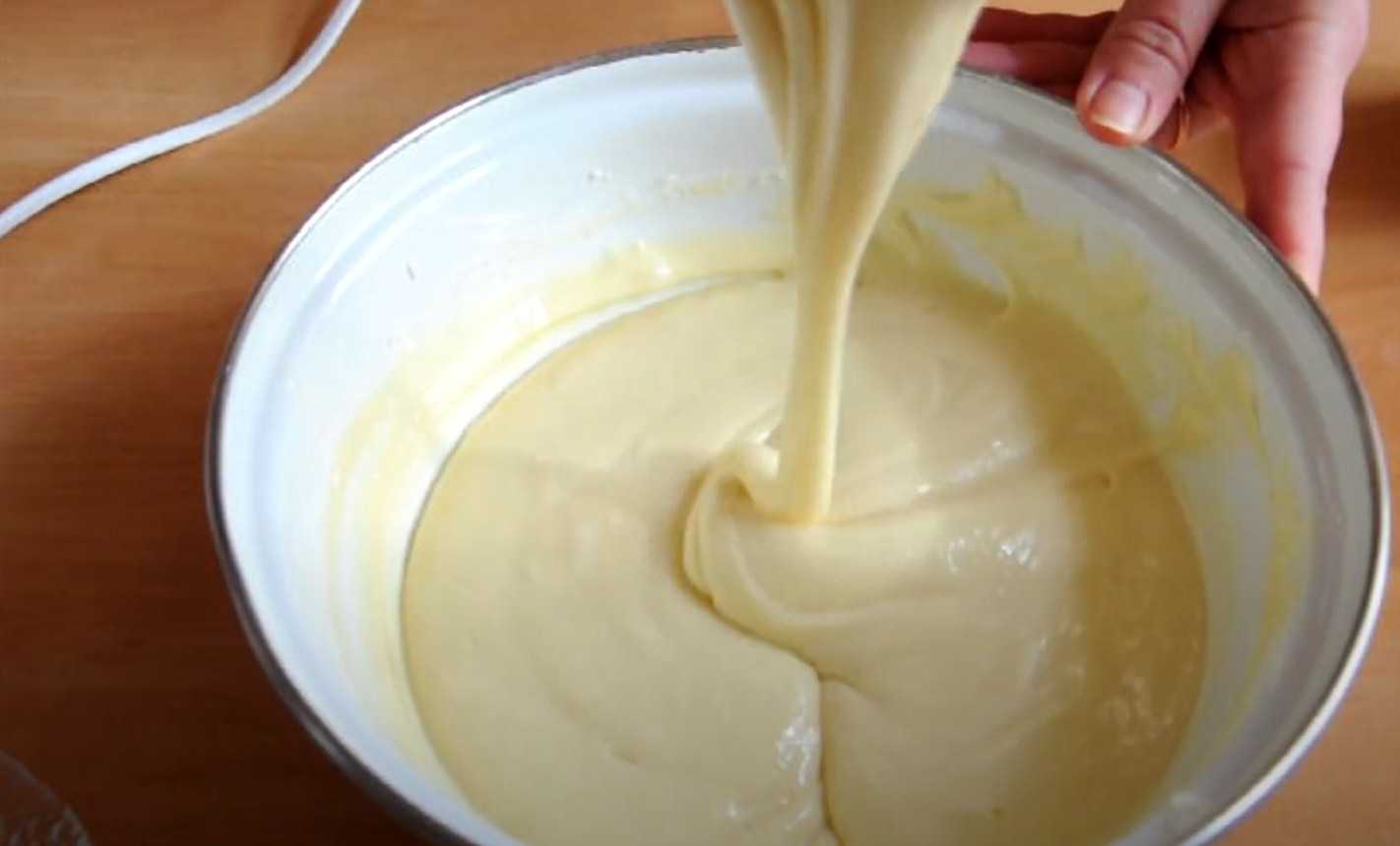 - Желтки и яйцо взбейте с 50 г сахара. Затем добавьте муку и крахмал и вновь взбейте массу, влейте в нее сладкий сироп и перемешайте.