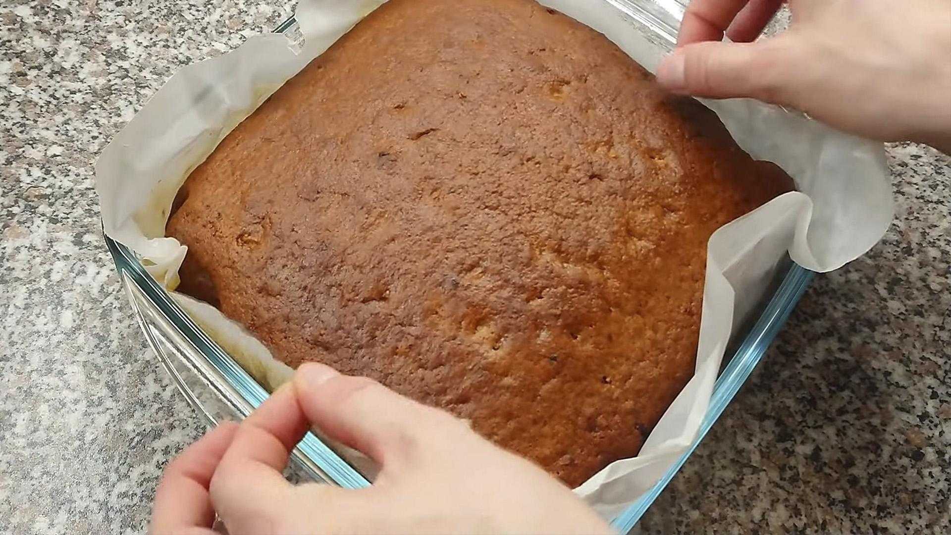 6. Выпекать бисквиты около 45 мин., проверив готовность деревянной зубочисткой. Остудить в форме, достать и убрать в холодильник, завернув в пищевую пленку.