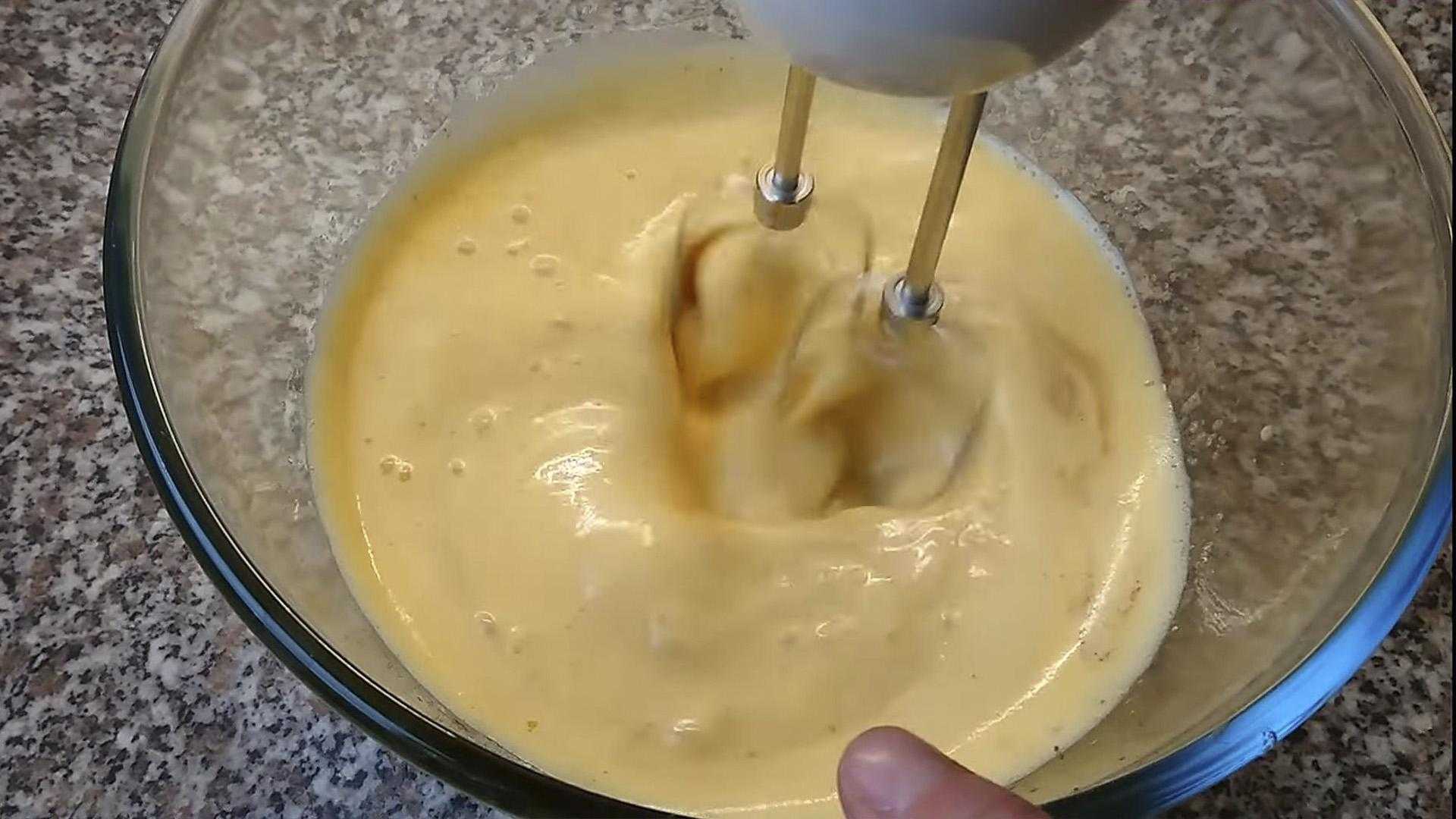 1. Яйца нужно брать самые крупные. Разбить их в миску, начать взбивать миксером на большой скорости.