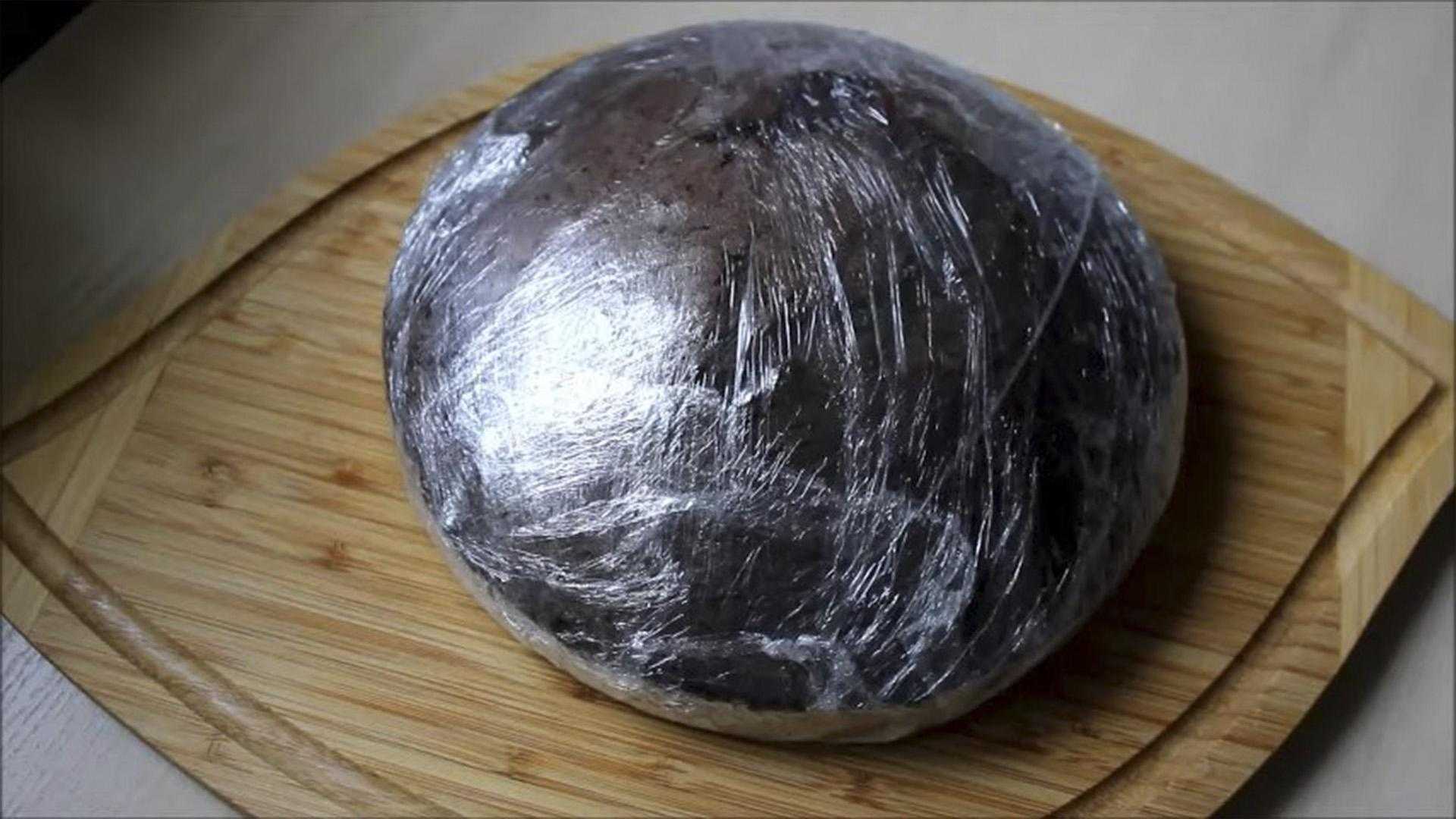 Готовый бисквит оставляем остывать в форме, а затем достаем и упаковываем в пищевую пленку. В таком виде отправляем выпечку на 5 часов в холодильник.