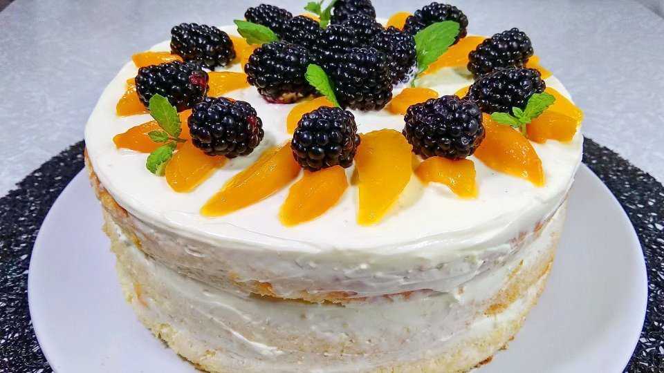 Видео рецепта бисквитного торта с фруктами