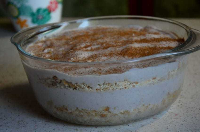 Готовый десерт посыпьте корицей, можно украсить ягодами, фруктами. Унесите угощение в холодильник на 1,5-2 часа и подавайте на стол. Ваши близкие будут в восторге!
