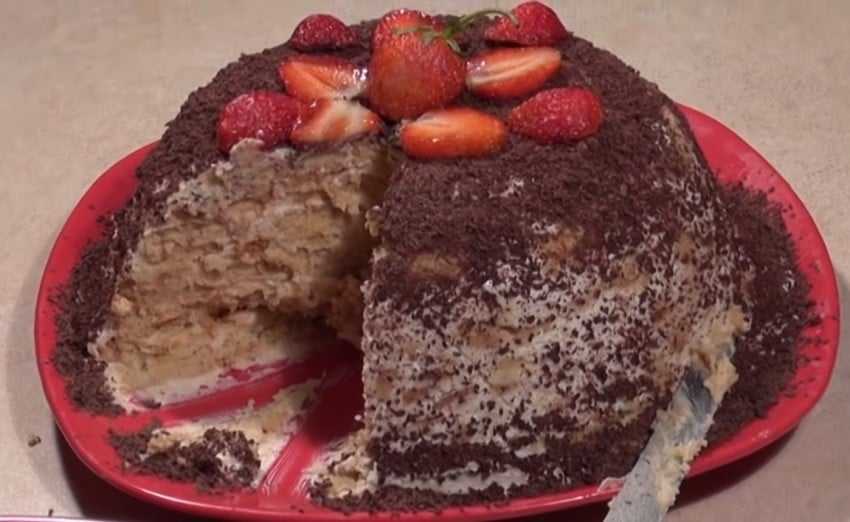 За основу десерта вместо бисквита идет печенье. Но, это не значит, что можно приобрести любой вид. Еще с советских времен самым подходящим считается «К чаю» или «Юбилейное», которое отличается своей рассыпчатостью.
