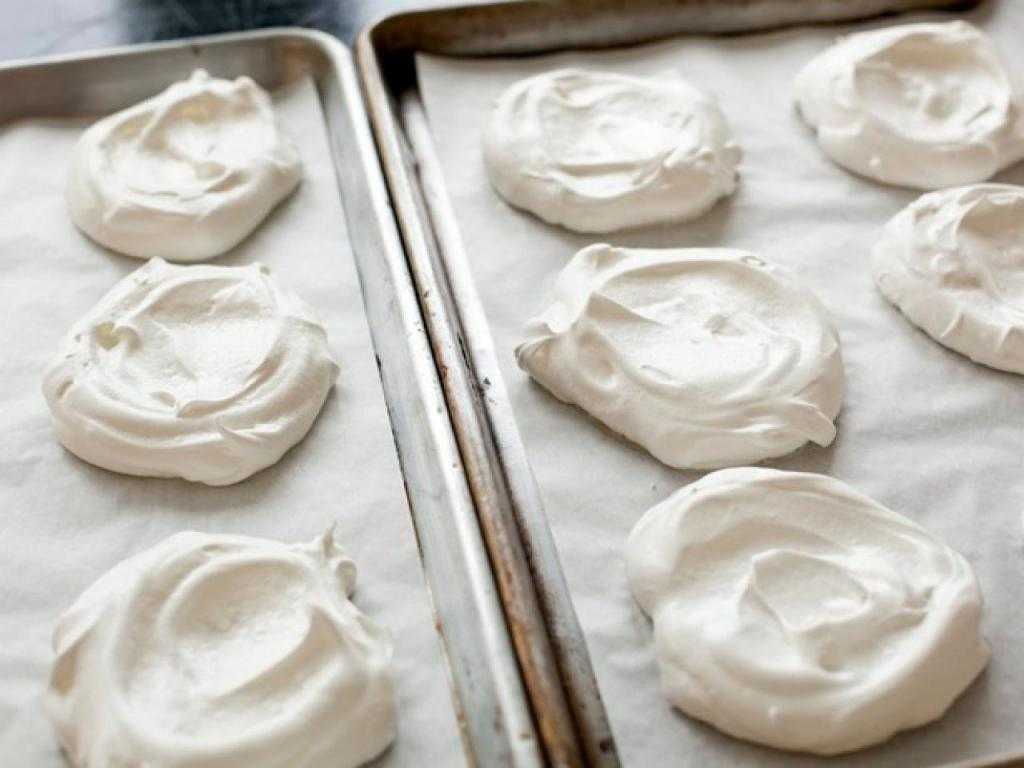 Белковую массу можно выложить на противень ложкой или кондитерским шприцем. Проследите, чтобы комочки не соприкасались друг с другом. После того, как разложили порции десерта, отправляйте их запекаться. Французы часто называют свой фирменный десерт “забытым печеньем”, так как на его запекание уходит 1-2 часа. Точное время выпекания безе в духовке зависит от размера порций. Если хотите мягкие меренги, запекайте их при температуре 150 градусов, пока они не приобретут светло-желтый оттенок.