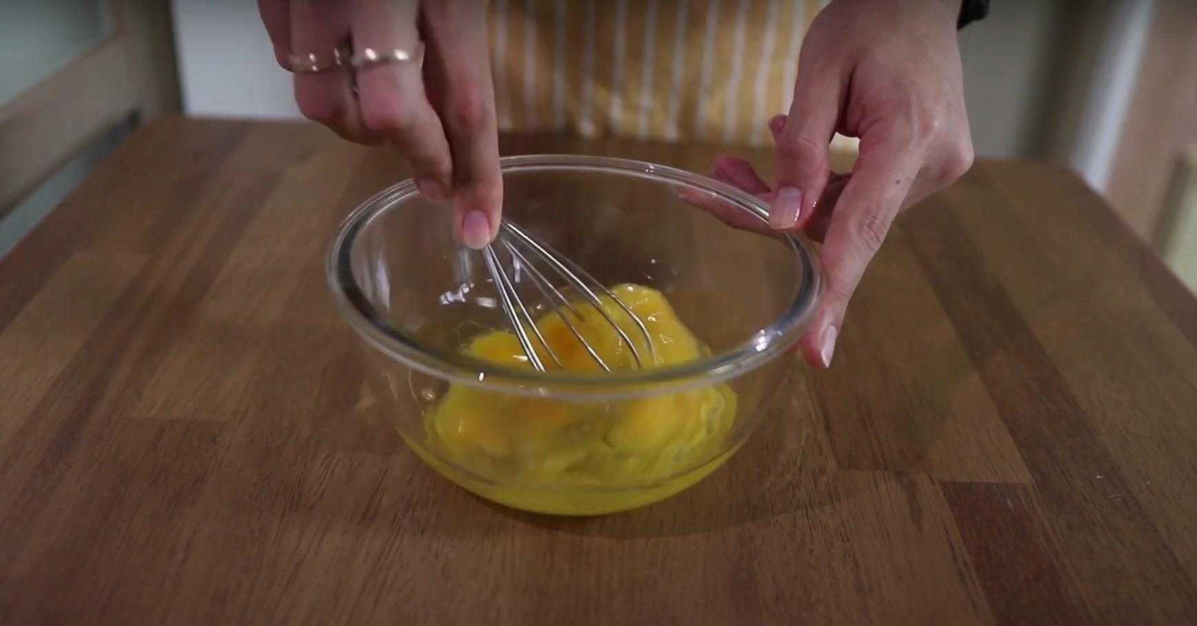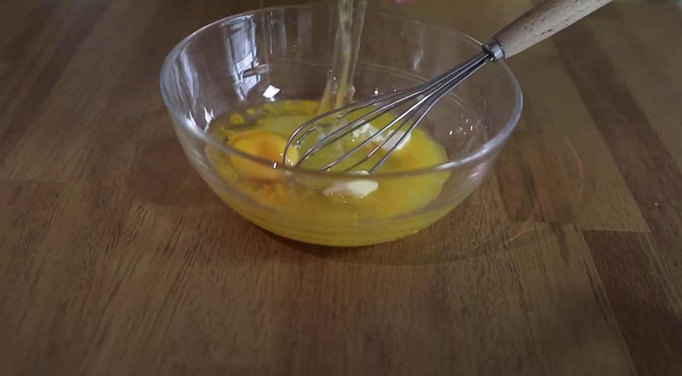 - Отделяем желтки от белков, и отправляем их в миску к сгущенке и воде. Взбиваем до однородной массы