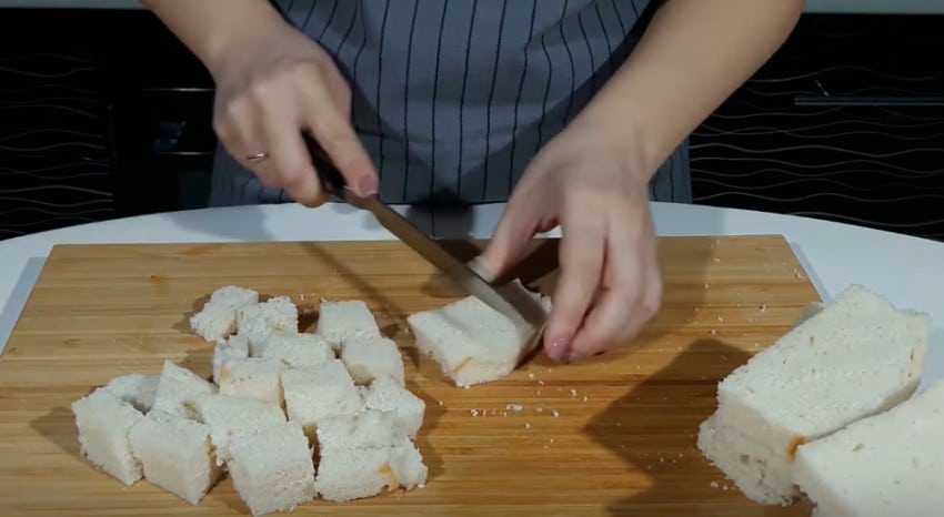 - Срезать с зефира верхушки. Оставшиеся донышки порубить.