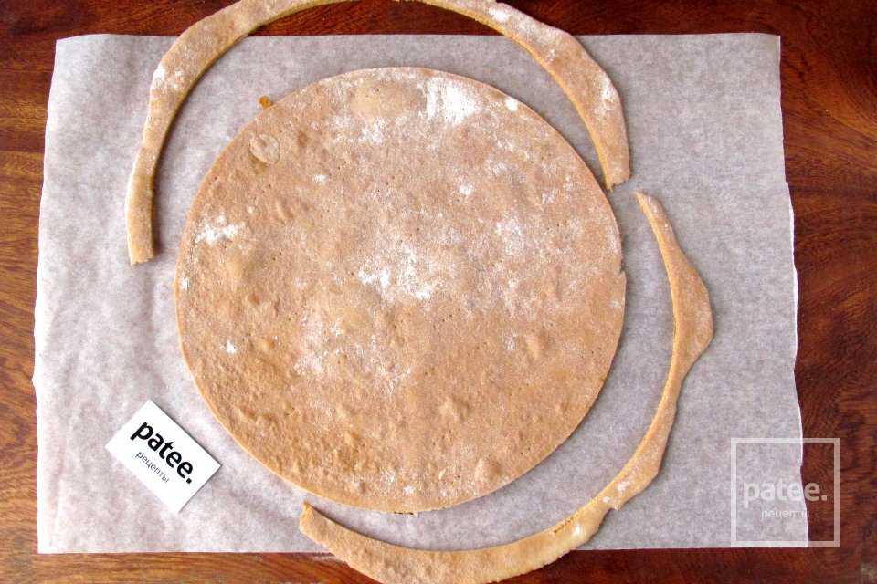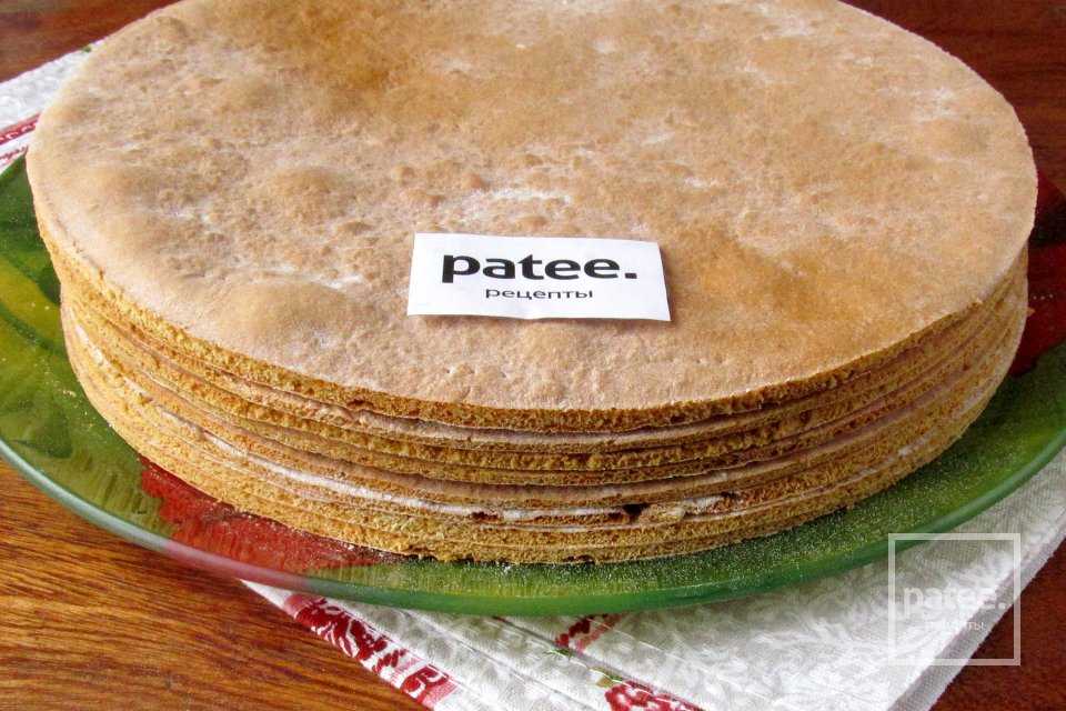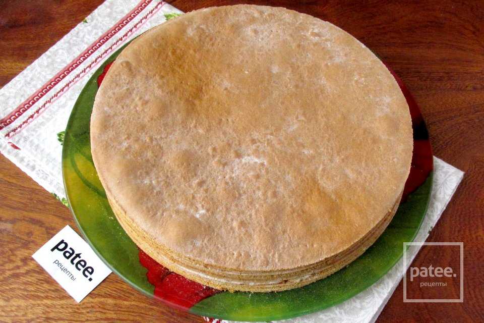 Выпекаем корж из медового теста примерно 3-5 минут, до светло-коричневого цвета. Коржи пекутся быстро, поэтому надолго от духовки не отлучайтесь. Пока выпекается один корж, быстро раскатывайте другой.