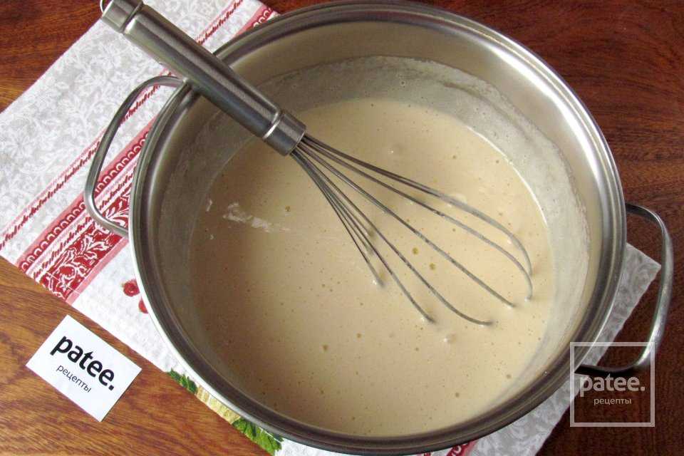 - При постоянном помешивании венчиком, доводим молоко до кипения и варим 2-3 минуты, пока крем хорошо не загустеет.