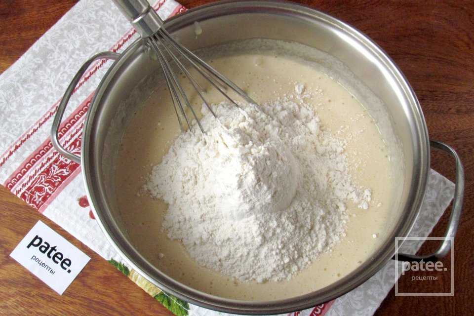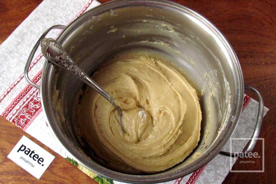 Аккуратно замесить легкое бисквитное тесто. В готовое тесто добавить кипяток.