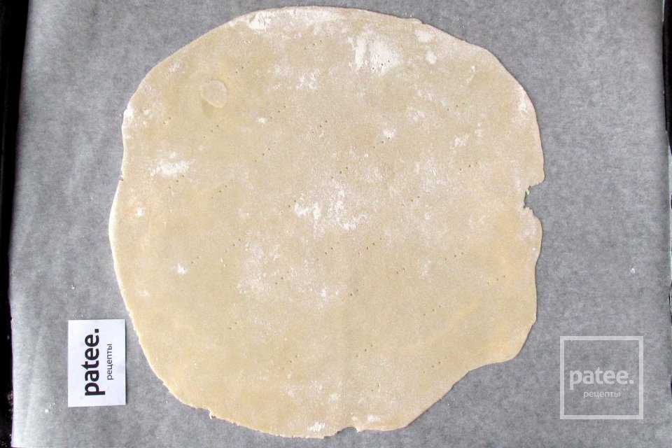 У меня не было формы нужного диаметра, я использовала сотейник, устелила дно пленкой, а сверху вылила начинку.