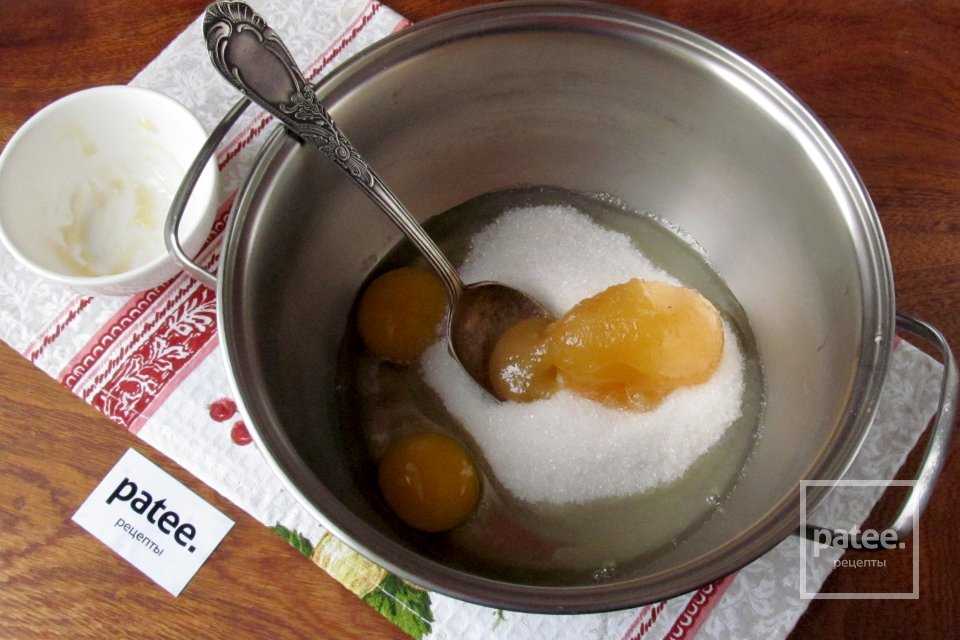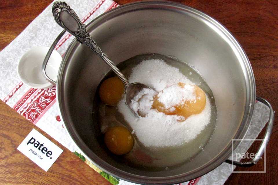 Взбиваем желтки с половиной сахара, указанного в рецепте.
