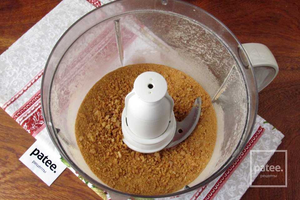 Обрезки от коржей измельчаем в кухонном комбайне или с помощью скалки до получения мелкой крошки.